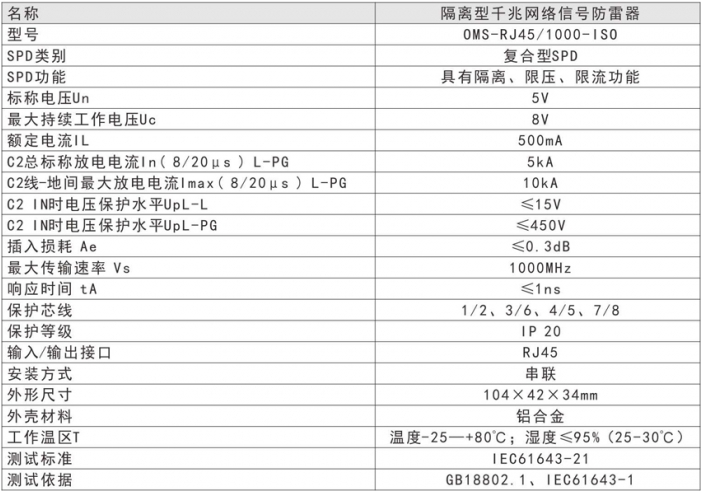歐姆雷盾(omrdon)隔離型千兆網(wǎng)絡防雷器(1000M網(wǎng)絡電涌保護器)依據(jù) IEC61000-4-5及 ITU-TK20&K21標準設計,該產(chǎn)品用于LPZ2- LPZ3分區(qū)界面的RJ45接口上,可廣泛應用于辦公和工業(yè)場所網(wǎng)絡綜合布線及類似用途的數(shù)據(jù)通訊系統(tǒng)中,保護1000M以太網(wǎng)計算機、服務器、交換機、路由器等網(wǎng)絡設備;適用于六類布線系統(tǒng)的SWITCH、HUB、ROUTER和計算機等網(wǎng)絡設備的雷擊或其他電涌保護。