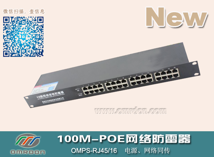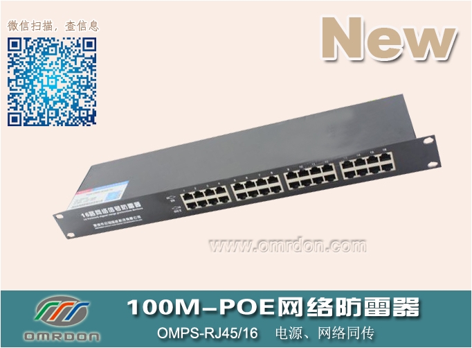 深圳歐姆雷盾16路百兆POE網絡防雷器(POE防雷器、以太網供電防雷器),是依據IEC和GB標準設計和制造,同時滿足IEEE802.3AT要求,采用優質、高泄放電能力的電涌保護器件和超低結電容超快速恢復二極管矩陣結構、網絡濾波器等為數據線提供高能粗級保護和低能量的精細保護,適用于利用五類/六類網線同時傳輸電源、網絡信號的服務器、無線AP、網絡攝像機、網絡交換機等通信設備的電涌保護,一體化集成設計,安裝方便。