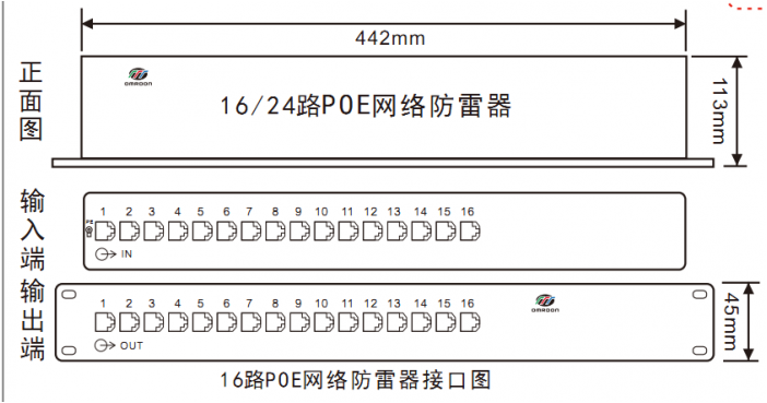 | 產品名稱 | 16路百兆POE網絡防雷器 | |||